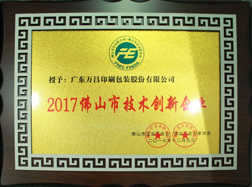 2017年,獲得佛山市技術(shù)創(chuàng)新企業(yè)的榮譽稱號