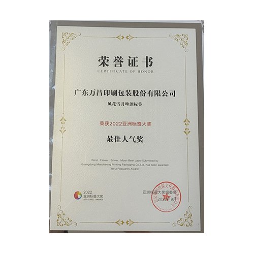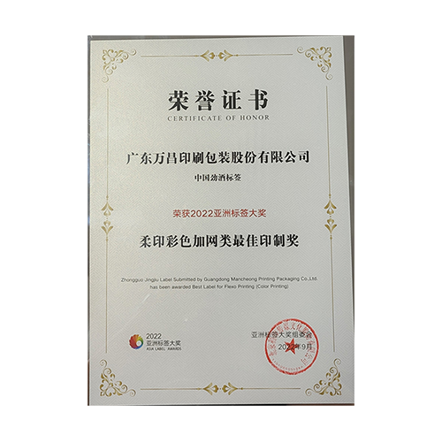 2022年-亞洲標簽大獎-柔印彩色加網(wǎng)類 最佳印制獎