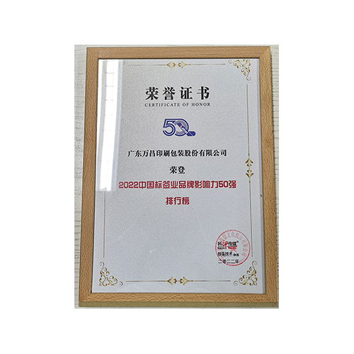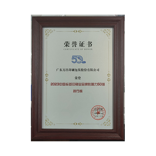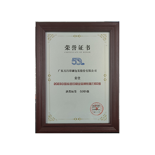 2023中國標簽印刷業(yè)品牌影響力50強排行榜-第五獎牌
