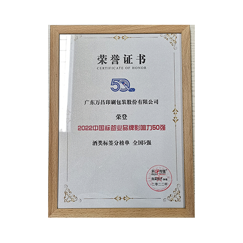 2022中國標簽印刷業(yè)品牌影響力分榜單排行榜-酒類第一獎牌